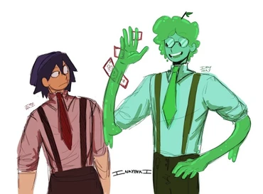 Ranboo's lanky 6'6" of unholiness was tripping down the stairs. Their whole body was covered with a white sheet that tangled around their feet as they stumbled down the stairs, struggling to see through the eye holes cut into the fabric. A much shorter boy with overgrown fluffy brown hair chased them down, somewhat waddling from the giant orange pumpkin suit he wore.