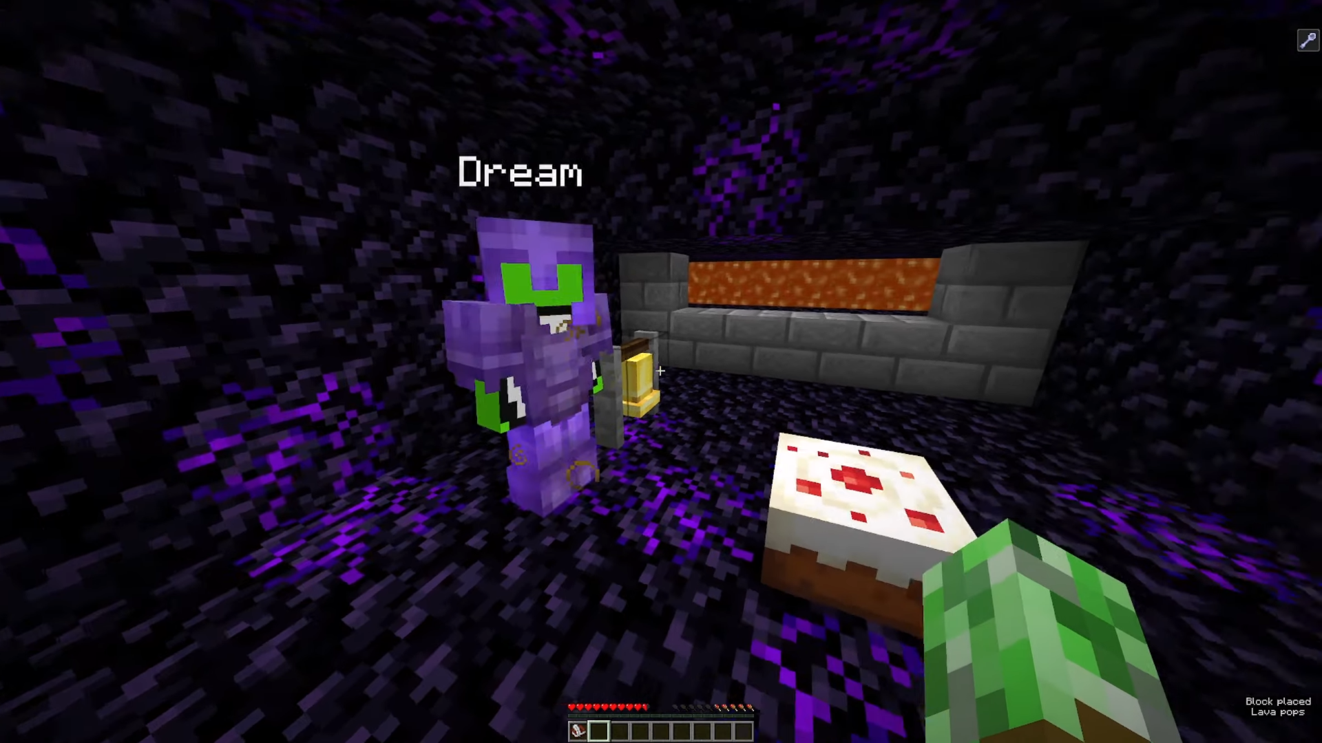 Above all else, Dream used to hope to unite the server as "one big happy family", where no nations existed and everyone was part of the Dream SMP.[18][19] He was willing to use violence in the past to achieve this, such as when he denied L'Manberg their independence.[20] Dream still tried to further this goal during the Manberg Rebellion. It was during this time that Dream became more involved in destruction and chaos, aiming to disrupt the status quo.[21][22][23] This was all in the hope that in the end, neither Manberg or Pogtopia would exist and everyone would just be part of the Dream SMP.[24] In a discussion with Punz later on, they both agreed that the goal was always to have one united server.[18] In his heart, Dream wants everyone to be friends again.[25] However, he lost track of this idea as his hatred of nations and infighting grew, and Dream eventually concluded that they just needed to restart.[26][27]
