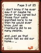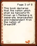 | Description | This book, serving as L'Manberg's second Declaration of Independence, was written by Wilbur on August 2, 2020, after Tommy had sacrificed his music discs to save L’Manberg.[3] It was destroyed during the Doomsday War. | ||