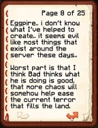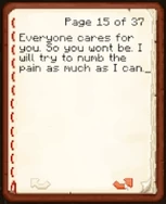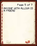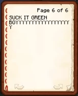 | Description | After his death, Slime left a written message for Quackity before disappearing. Each page contains one letter that is spaced apart from the others; these letters can be assembled to spell "LEGACY." The book's other contents appear to be gibberish. The seventh page was written by Quackity as he tried to figure out the message. | |