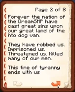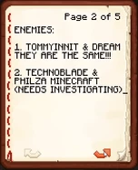| Description | In episode 3 of the Las Nevadas series on May 22, 2021, Dream wrote a note to Technoblade on Quackity's command. The content of this note is unknown other than the beginning being "Dear Technoblade." |