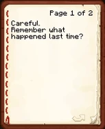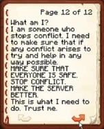 | Description | On March 31, 2022, it was revealed that Boo and Ranboo had been writing messages to each other using a shared "Do not read" book while Ranboo was in the afterlife. These messages mostly consist of Boo explaining his and Ranboo's current situation and attempting to reassure Ranboo.[68] | |