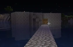 The Cube was Tommy's new vacation home, built by him and Tubbo on November 12, 2020 near Fundy's pillager farm.[85] It is linked to the vacation home by rail. On December 4, 2020, Dream blew it up while leading Tommy away from L'Manberg after his exile.[86]