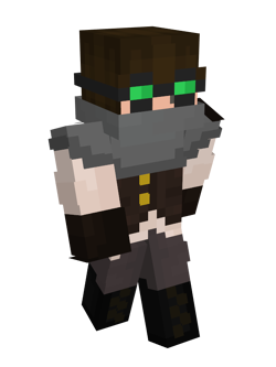 He wore a brown t-shirt with a vest over it, and sports copper goggles with orange-tinted lenses.